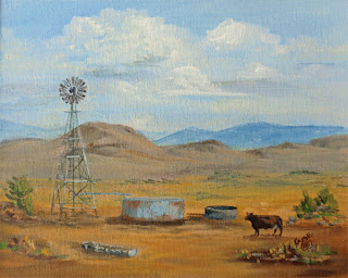 I traded with Lola in Nevada. I couldn’t decide what to paint and in the end chose a windmill. I think people like windmills. Maybe they give us a connection to the landscape in a personal or human way.
